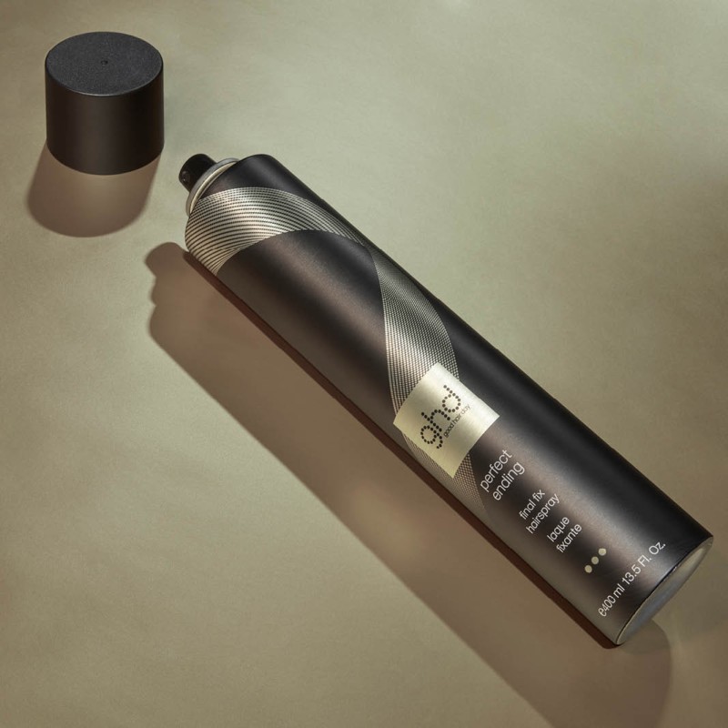 Pour un coiffage longue tenue, découvrez la laque fixante perfect ending.